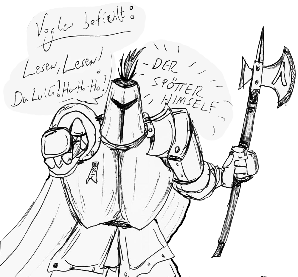 Arlonis Vogler, der "Spötter von Wardenburg" (Auftritt Akt 3, Inspiration durch "Knights of the Round" (SNES)). Arlonis ist ein überheblicher Ministerialen-Ritter im Dienste der Grafen von Oldenburg und vertraut vorallem auf seine Arroganz, seine Hellebarde sowie die fette Plattenrüstung, die ihn schützt. Doch falls mal etwas schief läuft, dann ist er auch schnell feige und hysterisch. "Verführerisches" Video Update, Teil 3: Mein "notorischer Backlog" wird immer kleiner. Diese Woche im Angebot:
