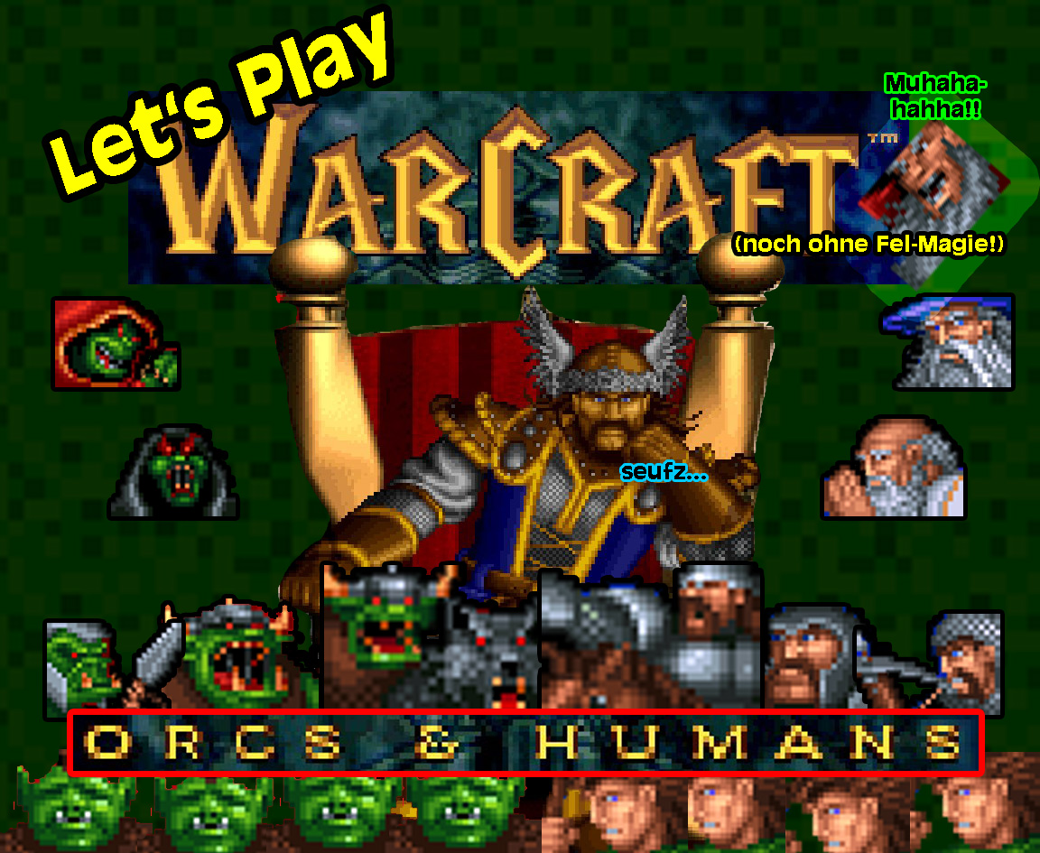 "Altmodisches Echtzeit-Gekloppe" Video Update, Teil 7: Was war ich froh als ich Warcraft - Orcs and Humans endlich auf einem "Bestseller Games"-Heft entdecken durfte. Dieses Spiel - mehr oder weniger basierend auf dem Warhammer-Universum (Ich habe gerade sechs Demigreifen-Ritter des Imperiums fertig bemalt, so nebenbei bemerkt) - ist ein Klassiker der Echtzeit-Strategie und wartet mit Rittern, Monstern, Zauberei und Aufbau einer Siedlung auf. Das Tolle an diesem Spiel ist, dass es wie in Victory / Polanie keinen nervigen Schatten des Krieges gibt. Hab das nie ganz verstanden warum man die Karte aufdecken sollte, wenn man die Gegner dann sowieso nicht ankommen sieht. Nur für das Gelände die Karte aufzudecken, wenn diese doch kaum eine Rolle spielt war immer etwas sinnfrei meines Erachtens. So aber sieht man die Gegner kommen und kann seine Verteidigung entsprechend umstellen - sofern nötig. Da es Echtzeit ist, ist es hektisch genug! Zumindest mir! Dieses Spiel legte den Grundstein für die hoch erfolgreiche Warcraft-Reihe, die mit Warcraft 2 aber erst ihren RICHTIGEN Durchbruch erreichte und dann mit Warcraft 3 und natürlich World of Warcraft ihren kometengleichen Aufstieg fabrizierte. Für mich aber war es schon "zu" fantasy-lastig geworden; die Spiele waren gut, aber irgendwie war der raue Unterton der Reihe spätestens mit Teil 3 beiseite gekloppt worden. Mir gefällt die Optik und die etwas simplere Welt vom ersten Teil noch am meisten; Ich bin da etwas altmodisch und brauche keine Grau-vs-Grau Geschichten. Der Film hat das ja auch versucht, aber immer noch das Böse (in Form vom Fel und Gul'dan) mit drin. Zum Glück! Den Gul'dan ist mit das spaßigste an dem ganzen Film! Späterhin ist ja jeder mal böse oder mal gut - naja. Lasst die Bösen böse sein und die Guten gut; mit ein paar kleinen Variationen, dann bin ich schon vollauf zufrieden. Mehr Mut zur Einfachheit! ;) Spielerisch ist Warcraft 1 auch recht simpel und mit KATAPULTEN (Zitat aus der Herr der Ringe, ihr wisst schon - dieser KATAPULTE-Ork) hat man eine regelrechte Gamebreaker-Maschinerie, wenn man Elementare und Dämonen mal außen vor lässt. Die sind genauso schlimm. Aber zum Glück (?) tauchen diese eher spät im Spiel auf und selbst dann hat man noch alle Hände voll zu tun. Aufgelockert werden die klassischen Siedlung-und-Armee Aufbau Missionen durch Dungeon-Missionen in denen man mit einer festgelegten Truppe in dunklen Höhlen (oder Ruinen) Leute retten oder umbringen muss - je nach Tagesform der nicht sonderlich komplexne Politik der Hintergrundgeschichte. Ich jedenfalls habe meine helle/dunkle Freude an den verpixelten Figuren, den blutigen Leichen und dem herrlichen Gefühl wenn ein Katapulttreffer mal wieder fünf Orks auf einmal wegknallt. Das alleine ist schon so ein irrer, überdrehter Klopper-Spaß dass die Nachfolger dagegen nur abstinken konnten. Da ist so ein Katapult-Treffer ja "nicht so schlimm" und die Feinde verlieren nur ein paar Lebenspunkte - hier aber ist es ein sicheres Todesurteil und was für eines! Freuen wir uns also auf eine Reise in die düster-simple Welt von Azeroth, wo Helden noch Helden und verrückte Zauberer noch verrückte Zauberer sind! Motto: Warum kompliziert, wenn's auch blutig geht? Let's Play - Warcraft Orcs & Humans (PC/DOS)