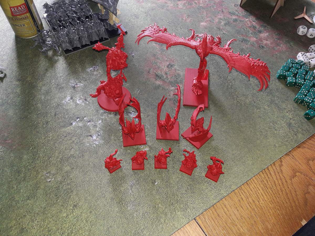 Ansonsten bin ich grad dabei einmal ein weiteres Heft-Spiel zu zocken (Bestseller Games). Es ist ein Rollenspiel mit Katzen und Kelten. ;) Ein LP ist noch nicht geplant, aber wer weiß? Ich muss erstmal weiter meinen Backlog abarbeiten. Viel Spaß! Achja, wer möchte kann mich nun via Patreon unterstützen. Mal sehen wie es läuft. ^^ Außerdem bastel ich weiter an meinen Warhammer-Armeen, es wird nun grundiert was da Zeug hält. Gestern erstmal ein paar Vargheister, Feuerphönix und Squigs mit Dragon Red grundiert. Sieht schon fetzig aus in dieser Farbe. Auch überlege ich meine kleine Zwergenarmee etwas auszubauen. Gyrokopter und Gyrobomber sind schon mal da. Nun brauch ich noch Langbärte, Eisenbrecher, Slayer und Hämmerer. (Also die ganze Elite-Reihe) Puh! Ich spiel ja die achte Edition (von GW zwar offiziell für Age of Sigmar abgemurkst, aber so gefällt es mir besser; das Setting & die Regeln sind sehr gut und es gibt nicht ständig "was Neues" was man kaufen muss ;) )