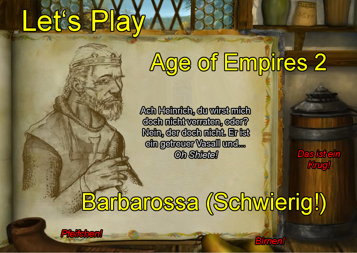 Friesensax am Gurt "Ich brauche was zu essen" Video-Update 16: Ein Hoch auf Sharon, Charlie und Van Halen, welche die "Stadt" nun von allen Lords of Blöd befreit haben. Und RIF Susan, dein unfreiwilliges Opfer hat diesen Sieg erst ermöglicht. Wir werden dann an dich denken, wenn wir ALF - THE MOVIE gucken. Aber Moment, das Kino ist ja explodiert?! Mist. Nunja, dann eben was anderes: Ein klassisches Drama vielleicht? So, mit ganz viel Verrat und so? Hmmm, da hät ich doch was. AGE OF EMPIRES 2, Barbarossa Kampagne! Uff jet et! Auf LAN Parties und auch allein zu Hause war Age of Empires 2 lange Zeit ein ständiger Begleiter von meiner einer Person. Ich hatte damals alle Kampagnen durchgespielt und Barbarossas Kampagne ist bei der ursprünglichen "Age of Kings"- Reihe die fünfte und damit auch Schwierigste. Ich erinnere mich noch daran, SEHR von Heinrich dem Löwen genervt zu sein und dass hat sich all die Jahre übern icht geändert, als ich es nun mal wieder installiert habe. Dieser Typ ist unglaublich. Doch diesmal ist es die neueste Version von AoE2 (wird ja immer noch gepatcht, es handelt sich um die Steam-Version) und dass bedeutet eine noch bessere KI und noch nervigere Gegner überall. Wenn es damals schon schwer war, dann ist es nun bockschwer mit, insbesondere wenn man auf SCHWIERIG spielt. Bin ich verrückt geworden? Nun, zum Teil, denn es gibt ja immerhin die göttliche Pausenfunktion, mit der man schneller reagieren und Micro-Management noch und noch betreiben kann. Für einen Laienspieler wie mich ist dies unerlässlich und wer hier High-Quality Gameplay erwartet den muss ich enttäuschen. Ich wurtschtel mich da mehr oder weniger geschickt durch die einzelnen Level. Ob nun gegen die eigenen Fürstentümer, die Huskarl-Polen, den Mecker-Papst, den störrischen Lombardbund, das janusgesichtige Konstantinopel oder den "Jerusalem ist alles"-Saladin: Barbarossa hatte ein ereignisreiches Leben, voller Versuche das heilige römische Reich zum mächtigsten Imperium in Europa zu machen. Dies hat auch für kurze Zeit gut geklappt, aber dann übernahmen wieder die Fürsten die Macht und der Kaiser war deswegen oft weniger mächtig als es möglich gewesen wäre. Warum das Ganze so ein Problem war, lag an vielen Faktoren, doch dieses Spiel wirft etwas Licht auf die Umstände die den Kaiser in Ausübung seiner Pflichten - nun sagen wir: "behindert haben". Heinrich ich guck dich an! Darum nun ein LP von Age of Empires 2 (bringen wir es hinter uns)!