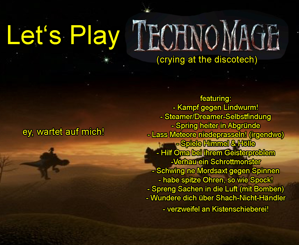 "Magisches Techtelmechtel" Video Update 19 Nun da die "Laaaaaannnndsss" wieder sicher zu sein scheinen kann es sich Luther mit Dawn gut gehen lassen. Das Drarakel hat Urlaub, Kenneth ist dood, Belial geplatzt und Timothys Segen strahlt über uns alle. Wie schön! Schön ist es auch im Dorf Dreamertown, im Lande Gothos (nein nicht Gothic), wo die Dreamer bestenfalls von kleineren Problemen, wie verschwundenen Schlüsseln für den Weinkeller, traktiert werden. In diesem Orte haust Melvin, ein Dreamer-Steamer Hybrid und somit per se ein Außenseiter dieser illustren Elfengemeinde. Als es dann Probleme gibt, ratet mal wer dafür verantwortlich gemacht wird. Genau! WIR! ÄhÖh, ich meine natürlich MELVIN! (Dieser Schuft!) Nun denn ist es an unsereiner den verbannten Melvin in Zelda-esquer Manier durch die sympathisch gestallteten Semi-3D Level zu steuern und die fiesen Viecher (welche die Welt bedrohen) zurück nach Hause zu entsenden. Dazu nutzen wir Waffen, Magie und die TECHNOLOGIEEE! Das Spiel: TECHNOMAGE Anmerkung: Ich spiele das Spiel ohne Sprachausgabe. Der Grund für diese Entscheidung ist nicht, weil die so schlecht wäre (ich bin da eh schmerzfrei), ganz im Gegenteil! Die Synchro ist top. Aber ich dachte, ich probier mal was Neues und gebe dem Spiel so meinen "eigenen" Twist. Gibt ja schon mehrere LP's davon und das war das einzige "Besondere" was mir dazu einfiel. Ich selbst bin kein guter Synchronsprecher und habe keinerlei Varianz, ergo kann ich eigentlich nur jedem raten, das Spiel mit Sprachausgabe AN zu spielen. Ist wirklich ein rundum gelungenes Action-Rollenspiel, das sich dann leider nicht so gut verkauft hat. Ich fand's immer schon toll, als alter Zelda-Jünger. Ich wünsche mir auch immer noch (wie für God of Thunder oder Gothic) eine Art Leveleditor. Dann könnte Technomage nochmal eine Renesaince... Renesoße.. Rennesaisee? (Google anschmeißen, Renesaisse eingeben und Renaissance rauskopieren) Renaissance erleben! (immer diese Franzosen!) ;)