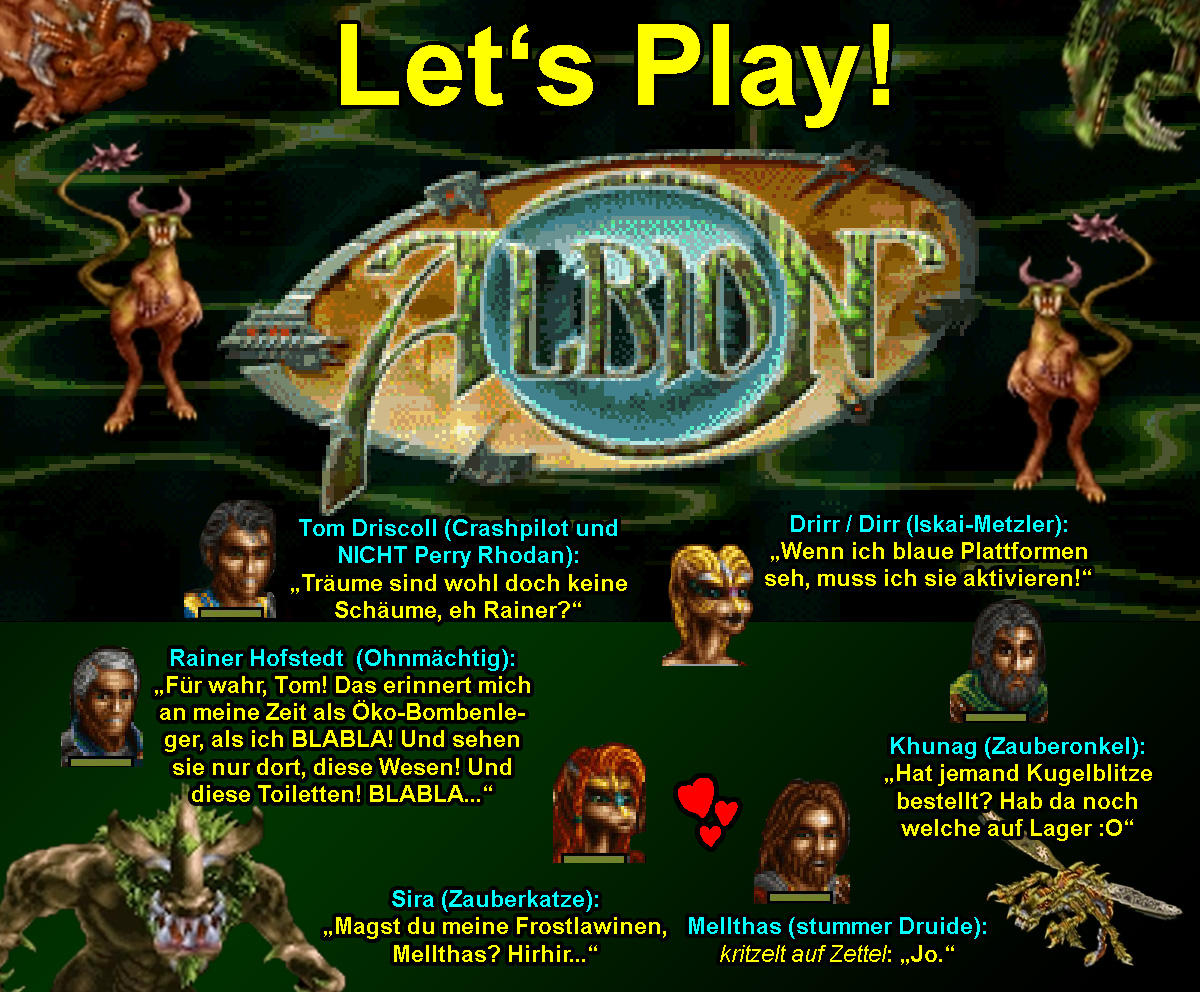 Als zweites - und wesentlich Größeres - LP habe ich einen Klassiker aus deutschen Landen hervorgekramt, das legendäre und auch von Altmeister Kikoskia gefeierte, Spiel von Bluebyte: Es geht um ALBION! Dieses epische Rollenspiel ist eine Mischung aus Fantasy und Science-Fiction, komplett mit Musik & Soundeffekten, präsentiert in 2D oder 3D-Ansicht und mit einem interessantenVolk, den Iskai (alias Katzenmenschen). Ich persönlich fand die Dungeons damals (ich kaufte es damals auf einer Bestseller Games) zu gruselig um wirklich weit kommen zu wollen (zu dunkel und die Monster machten gruselige Geräusche)), aber ich habe die stimmungsvolle Welt und Atmosphäre immer sehr genossen. Es ist auch kein 08/15 Ork-Elfen-Zwergen-Gekloppe, sondern etwas völlig Eigenständiges und sehr durchdacht. Dieser Bruch mit klassischem Fantasy-Elementen ist auch genau das, was die Entwickler bewusst so umgesetzt haben wollten; wie ich aus diversen Interviews dann erfahren habe.