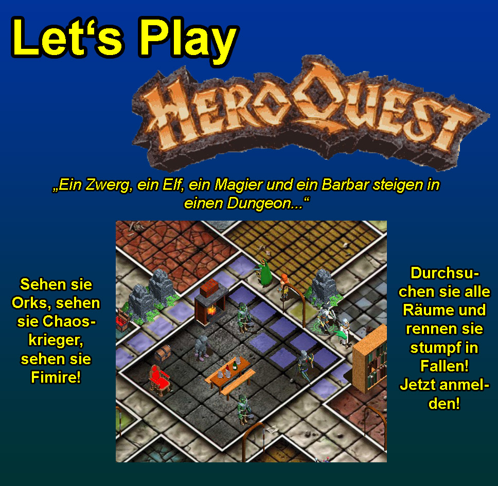 Außerdem wird es in diesen dunklen Tagen auch wieder Zeit für etwas Gemütliches, und was wäre gemütlicher als ein Spieleabend mit den guten, alten Brettspielen? Da diese aber nur schwer abzufilmen sind (und man mehr Spieler benötigt, schnüff), bietet sich eine Kombination von Brettspiel/PC-Spiel an. Wir kramen also das bekannte Rollenspiel-Brettspiel HEROQUEST heraus und machen uns mit 4 Helden auf den Weg verschiedene Szenarien durchzuspielen. Komplett mit Monster-Klopperey sowie klasischen Schätzen und Fallen. Es muss nicht immer kompex sein. Das Spiel ist es auch nicht wirklich. ;) Es gibt zwar eine offizielles Spiele-Adaption von der kultigen Spieleschmiede GREMLIN, aber für mich war es immer etwas sperrig und wenig übersichtlich (ironischerweise), da das eigentlich simple Spielbrett dort in einzelne Blöcke unterteilt war und die Helden irgendwie immer über den ganzen Dungeon verteilt waren. Dabei ist ein Hauptaspekt des Spiels mit anderen Charakteren zusammenzuarbeiten. Zum Glück gibt es fähige Fans und Programmierer, welche Heroquest etwas getreuer am Original umsetzen konnten. Ich hab da dann schließlich eine Version gefunden, die mir am besten gefiel (und auch komplett funktioniert, abgesehen von einigen, seltenen Bugs).